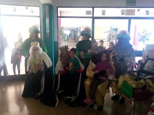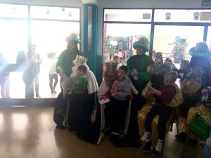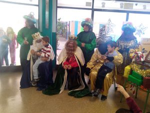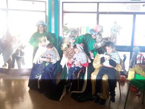 ¡Qué alegría! ¡Qué ilusión para mis alumn@s! Vienen a visitarnos a nuestro cole los Reyes Magos. Vienen para recoger las cartas que anteriormente hemos escrito. Sus caras lo dicen todo.
